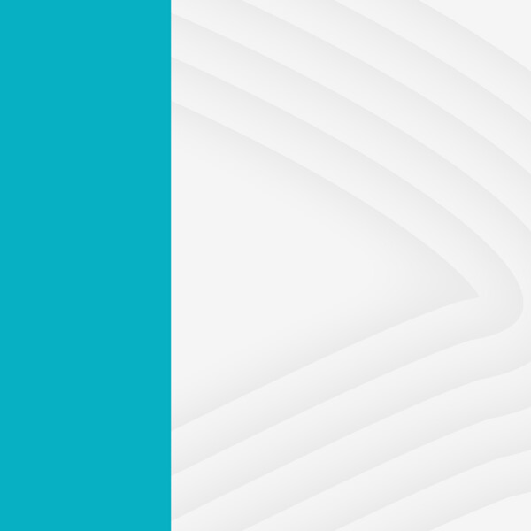 Card vertical dividido em duas partes: à esquerda, uma faixa larga azul-turquesa; à direita, fundo branco com curvas cinzas suaves formando um padrão fluido. Não há textos nem figuras humanas, apenas composição gráfica minimalista com estética institucional. (fim da descrição)